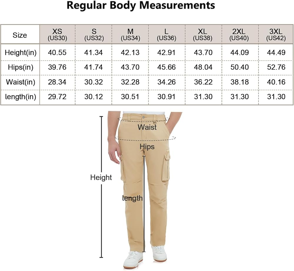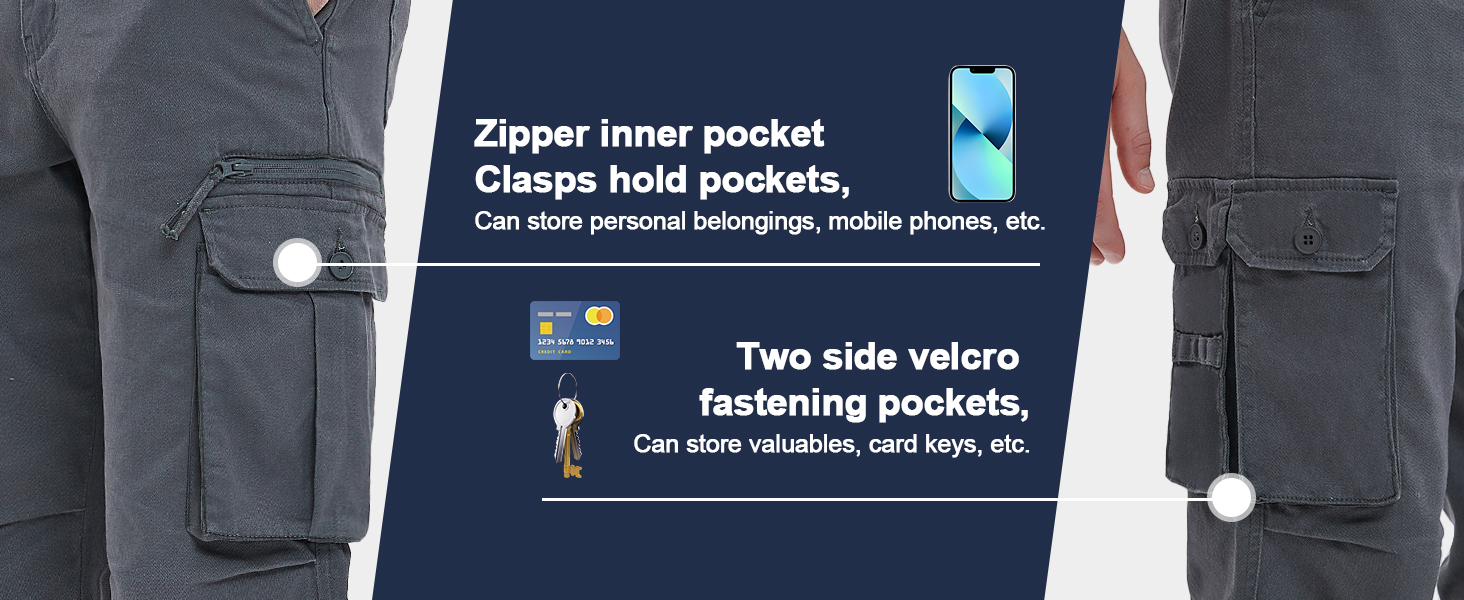 Multifunction pockets design:Cargo pants for men features 7 tactical pockets include 2 deep front pocket;2 back pockets;1 big leg button pockets;2 split leg button pockets can carrying all your essential equipment.