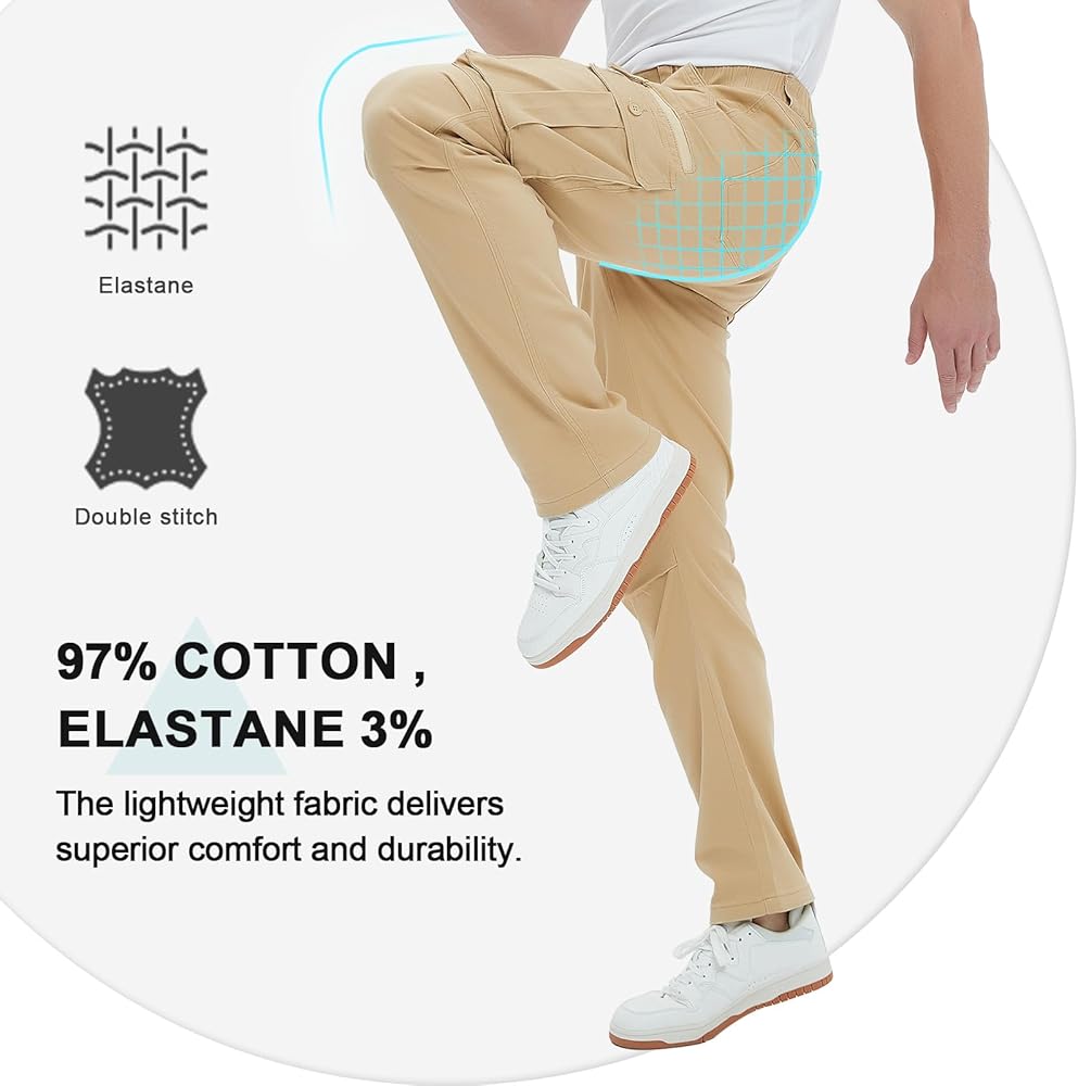 Stretch & Comfy & Breathable:Mens cotton casual pants made with 97% cotton+3% elastane,can provide you with a comfortable and breathable experience in your daily life.