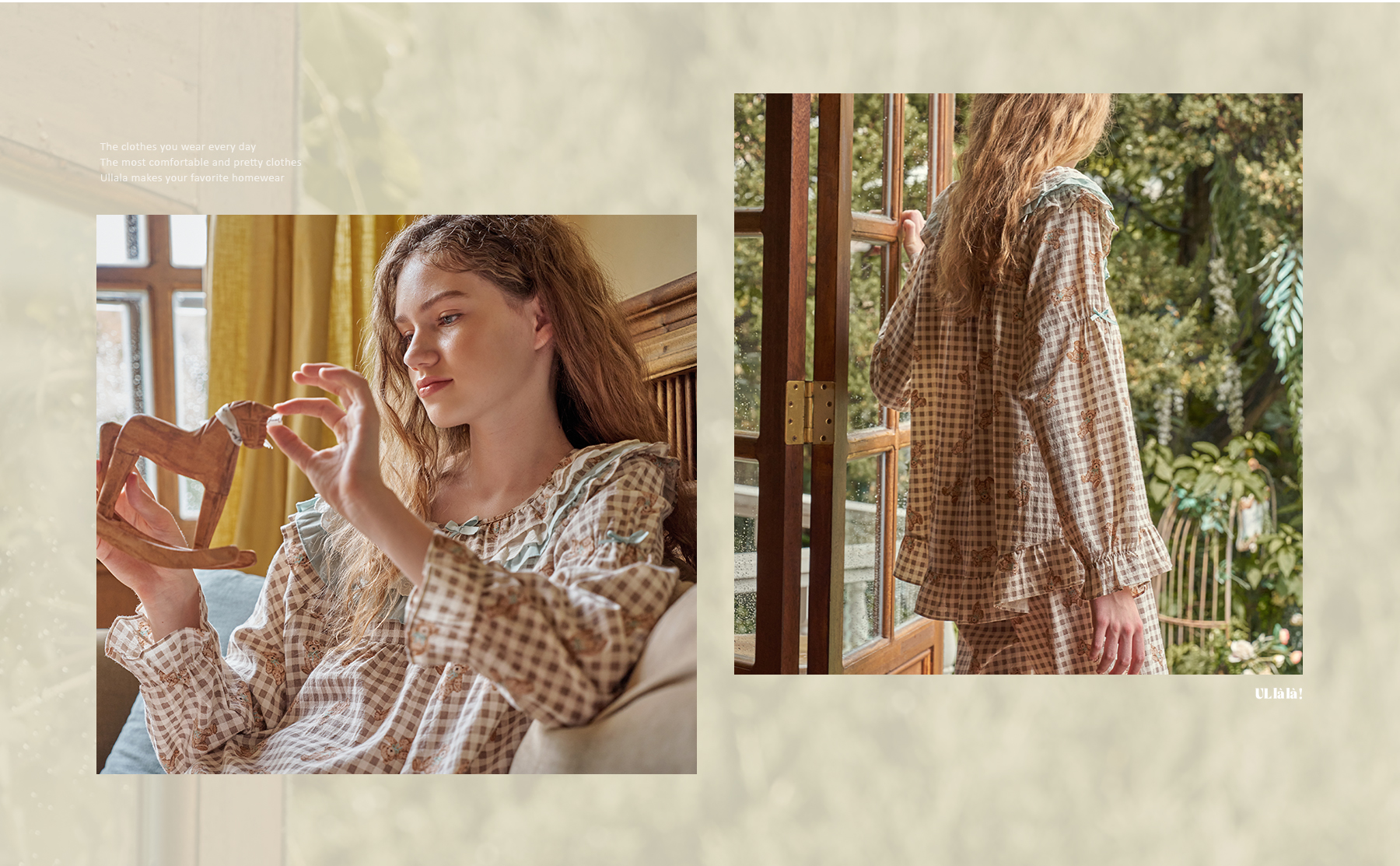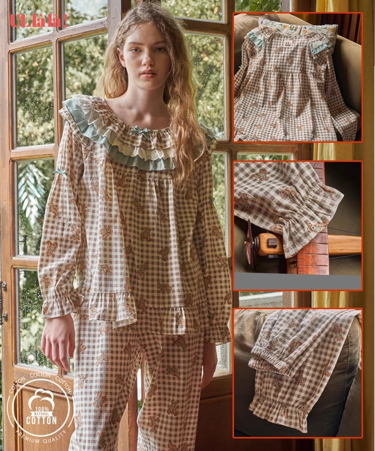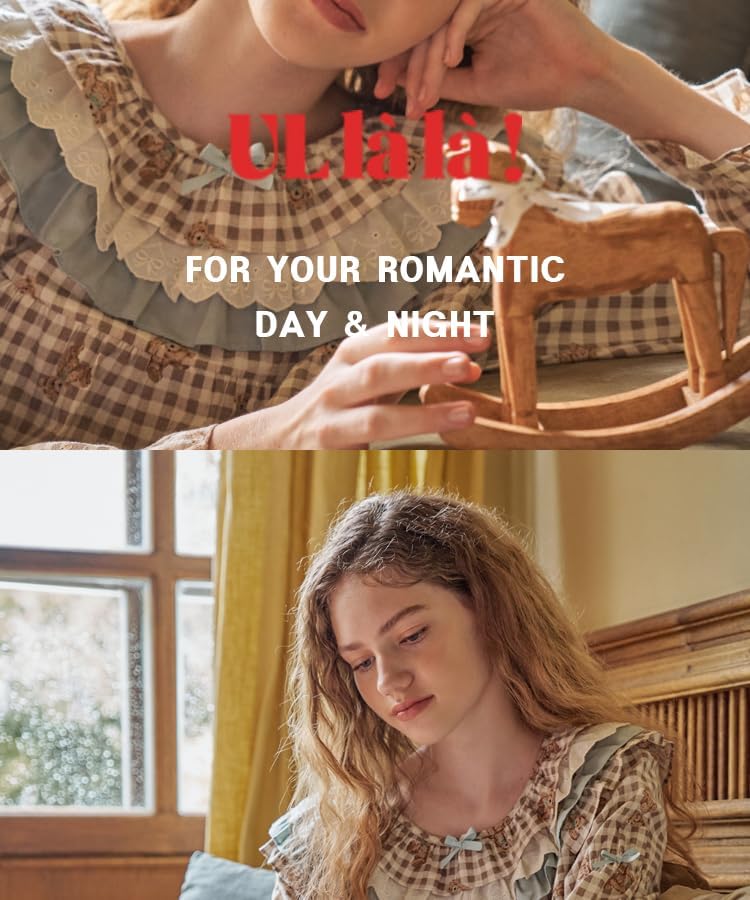 Design & Features: It is a two-piece pajama with a bear print with a mint ribbon and a mint color to match. The fabric on the bottom of the check brings a comfortable feeling, while the mint color and ribbon lace, sleeves and neck ribbons create Ullala's own loveliness.