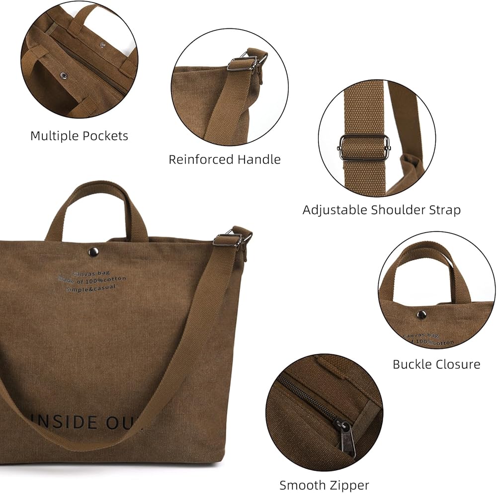 Perfect size: Canvas tote bag for womensize is 17.3*15*5.5 inches, adjustable shoulder strap, suitable for most people's height, can be carried by hand, shoulder and cross-body;