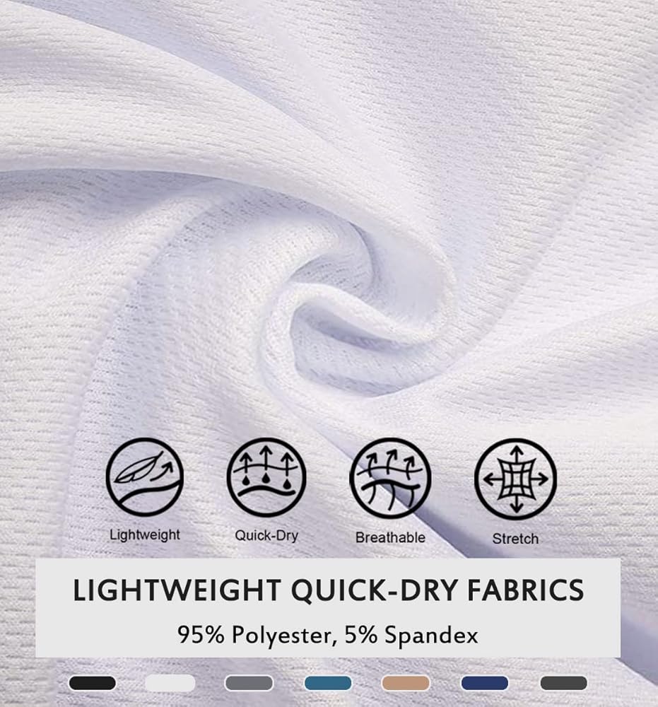 Lightweight, moisture-wicking, breathable fabric dries really quickly, helps keep you cool and comfortable during workouts.