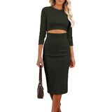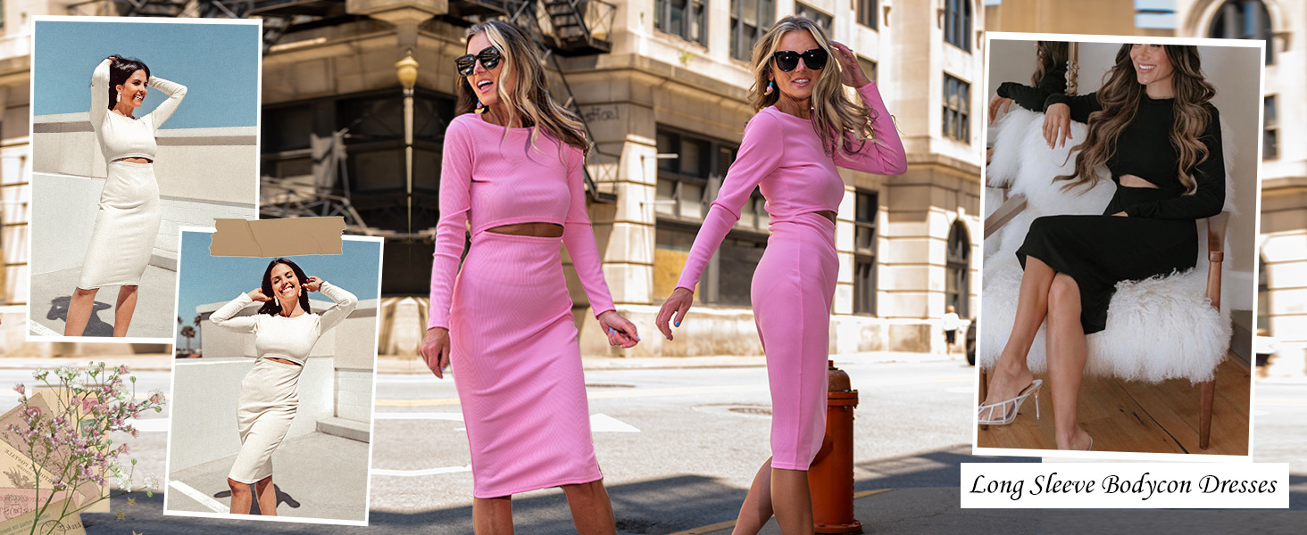 EYE-CATCHING DESIGNS: Long Sleeve Dress/ Hollow Out Dress/ Cut Out Dress For Women/ Fitted Pencil Dress/ Tight Bodycon Dress/ Womens Midi Dress/ Knee Length Dress For Women/ Sheath Dress For Women/ Solid Color Dress/ Knitted Dress/ Ribbed Dress For Women Fall/ Womens Fall Fashion