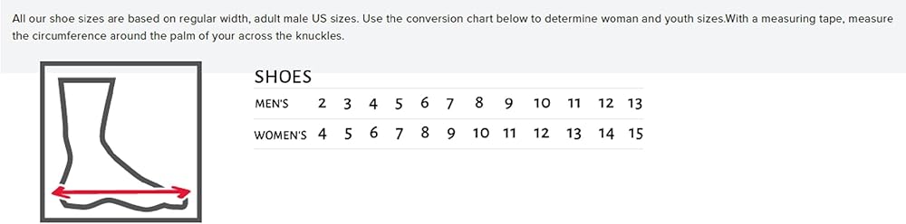 Please see conversion size chart to help determine sizing - Shoes are adult male US sizes - (Ex: Women size 7 = Men size 5)