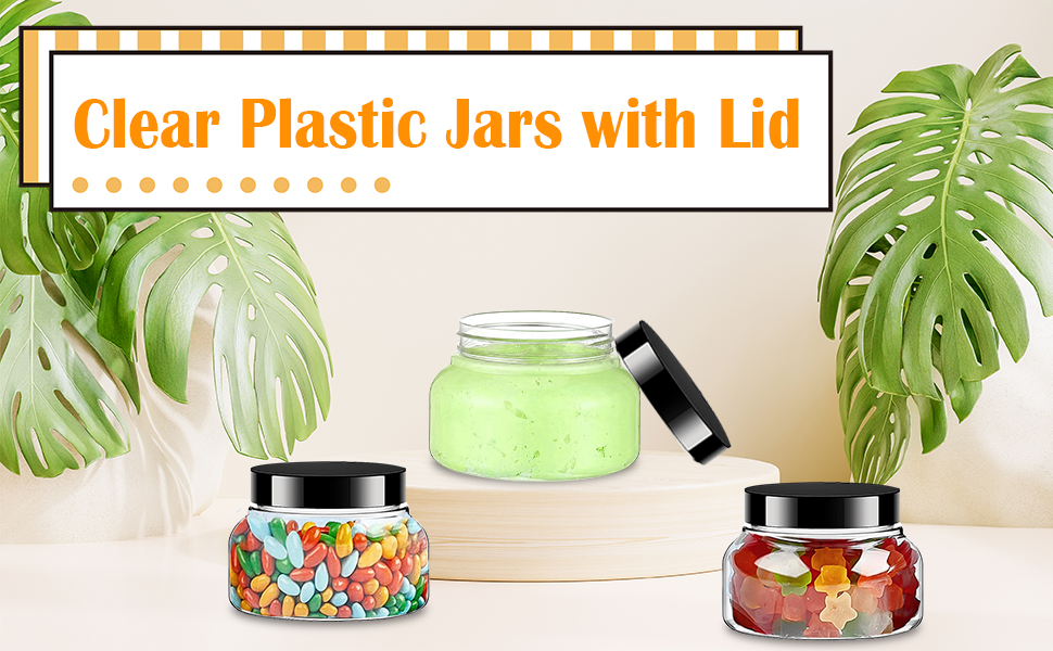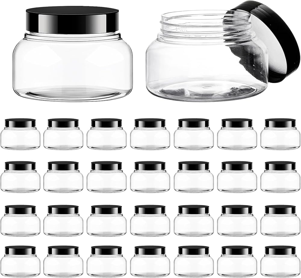 30 Pcs Plastic Jars with Lids: The package comes with 30 pieces of clear plastic jars with lids, adequate in quantity to satisfy your daily use and replacement demands, as well as sharing needs.