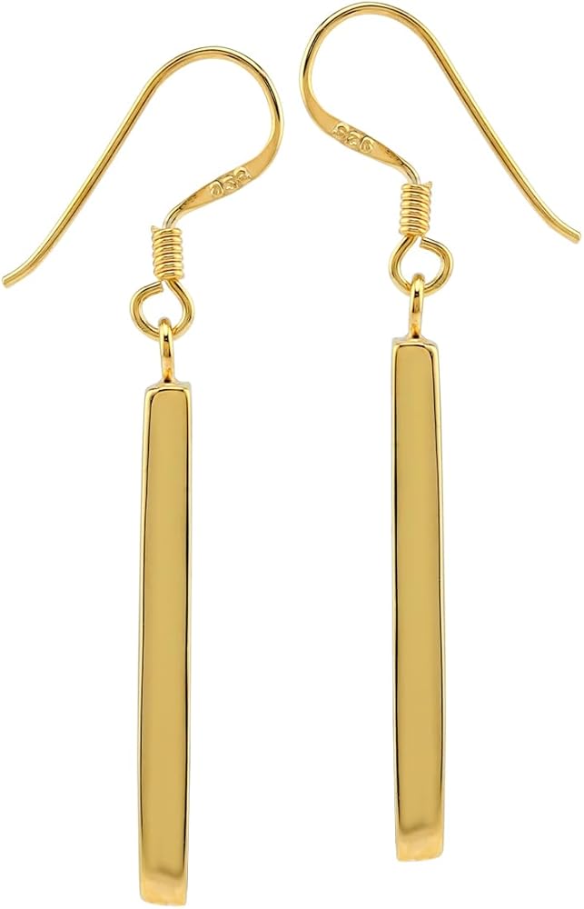 Silvershake Stone Inlay White Gold Plated or 18K Gold Plated 925 Sterling Silver Long Stick Dangle Hook Earrings Jewelry for Women