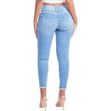 Trendy Vintage Look: Elevate your style with our YMI Women's Junior WannaBettaButt 3-Button Mid-Rise Fray Hem Skinny Ankle Denim Jeans. These skinnies are designed to be your new favorites, combining classic appeal with modern trends. The exposed button fly and light distressing create a vintage-inspired, worn-in look.