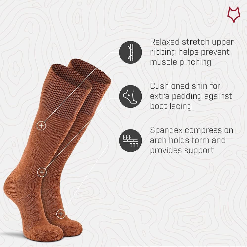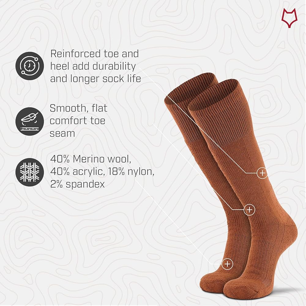 versatile 4-season sock for rugged use: merino wool thermal socks stand up to cold-climate duty, keeping your feet warm and comfortable; secure fit means no bunching in the bottom of your boot, minimizing blisters