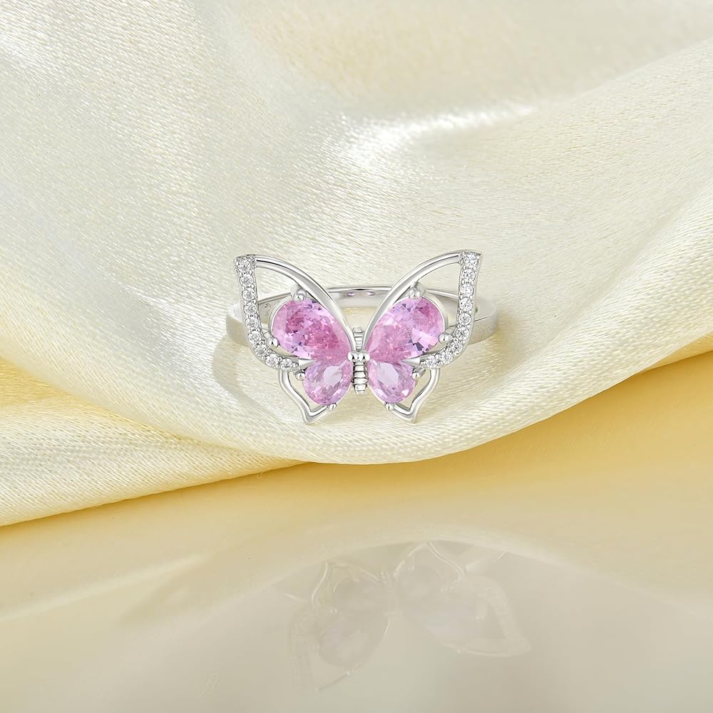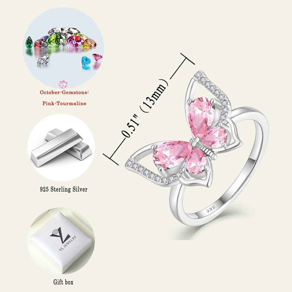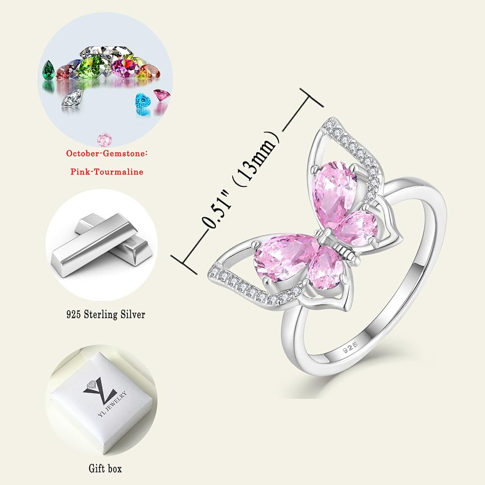 YL Butterfly Rings 925 Sterling Silver Simple Ring Birthstone Statement Rings for Women