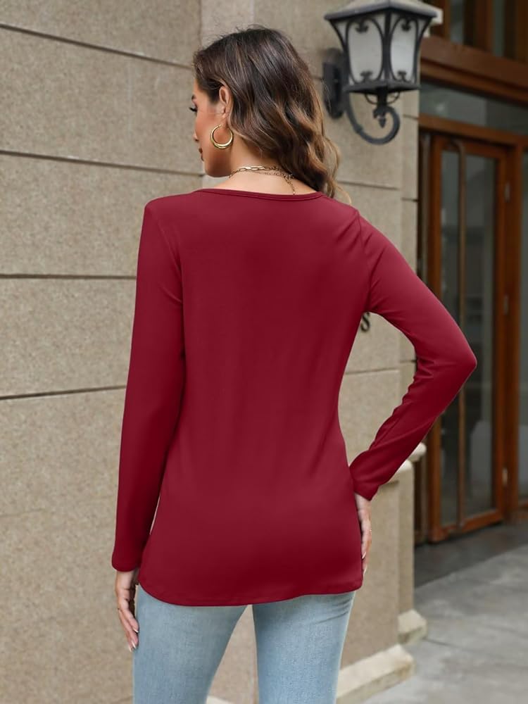 Trendy Design-V neck t shirts are never out of fashion. This long sleeve tee shirts are featured with long sleeve, solid color, v notch design, shows off your beautiful body curves. V neck t shirts for women are the must-have tops in your wardrobe.