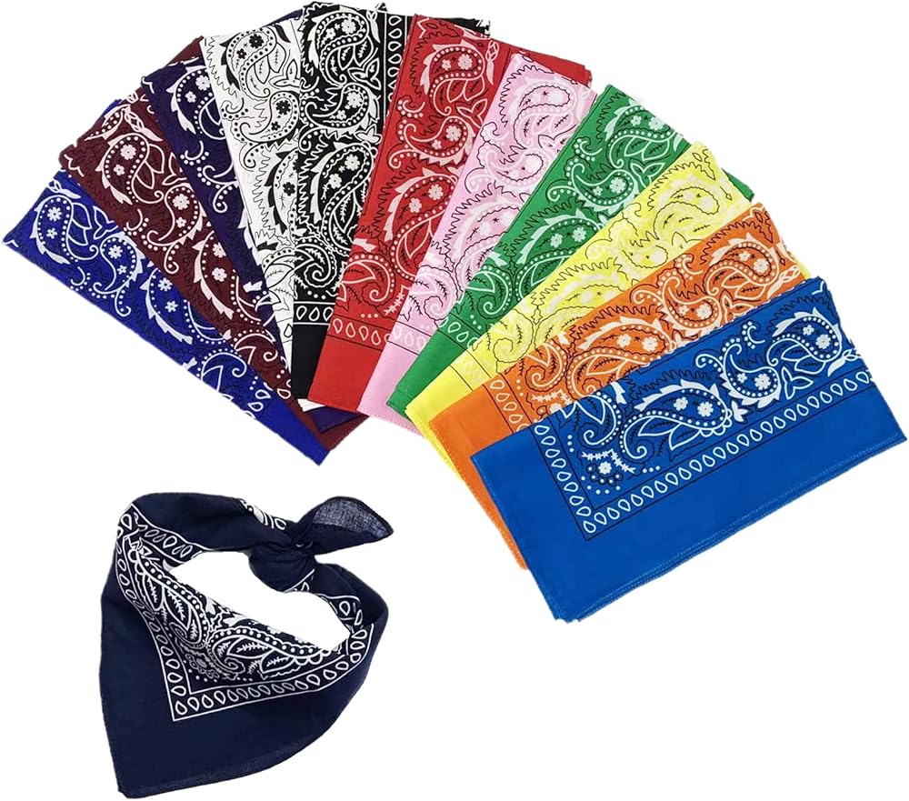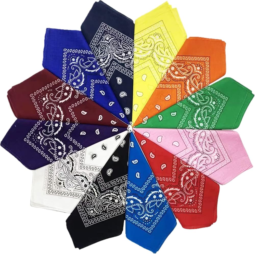 Each package includes 12 popular color bandanas, For MultiColor option,These novelty bandanas can be used as headband, scarf, necktie, riding mask and more, can also be used as a daily dress collocation. A great gift for your lovers, friends and family, suit all of your clothing and hair styles.