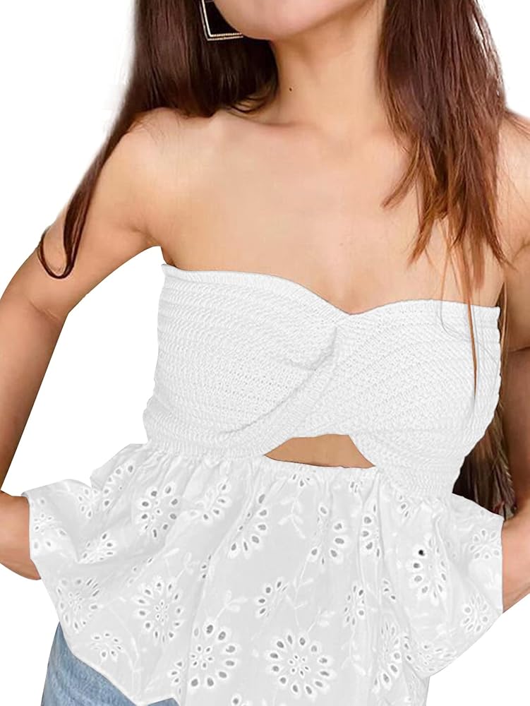Strapless off shoulder criss cross hollow out bandeau top, backless, show off your charming curves.