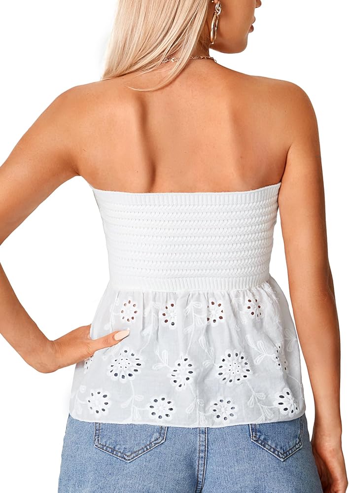 Vintage embroidery eyelet lace sleeveless knit babydoll tops, perfect for summer, pair with high waist jeans, casual pants or denim shorts for a stylish look.