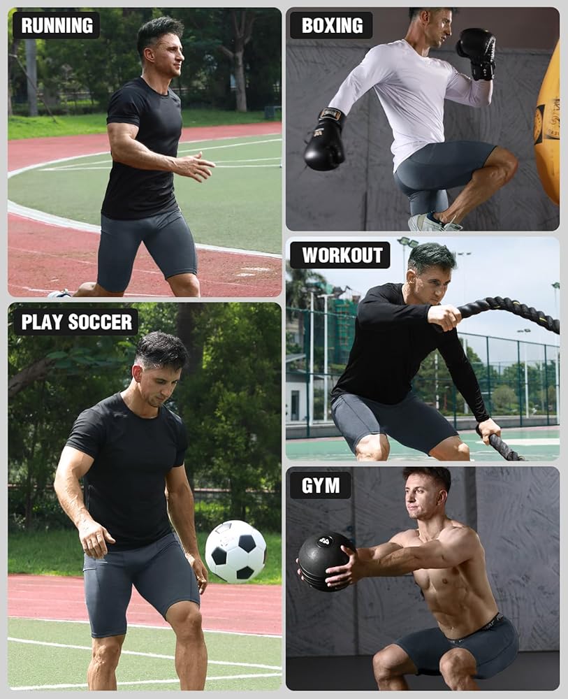【Designed for All Sports】Compression underwear provide sun protection and are suitable for all weather sports such as: exercise, running, basketball, fitness, biking, baseball, tennis, weight training, surfing, squats, soccer, etc.