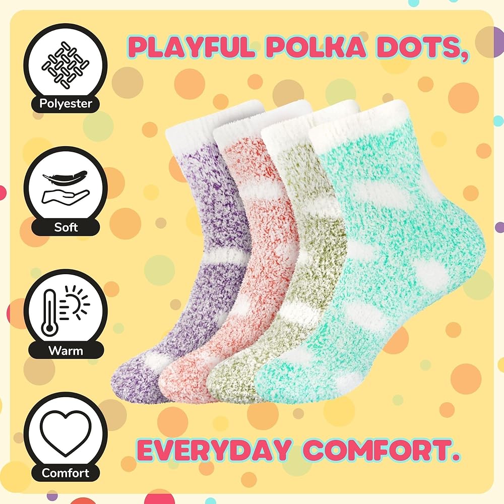 BambooMN Women's Soft Warm Fuzzy Fluffy Polka Dot Cuff Crew Home Socks