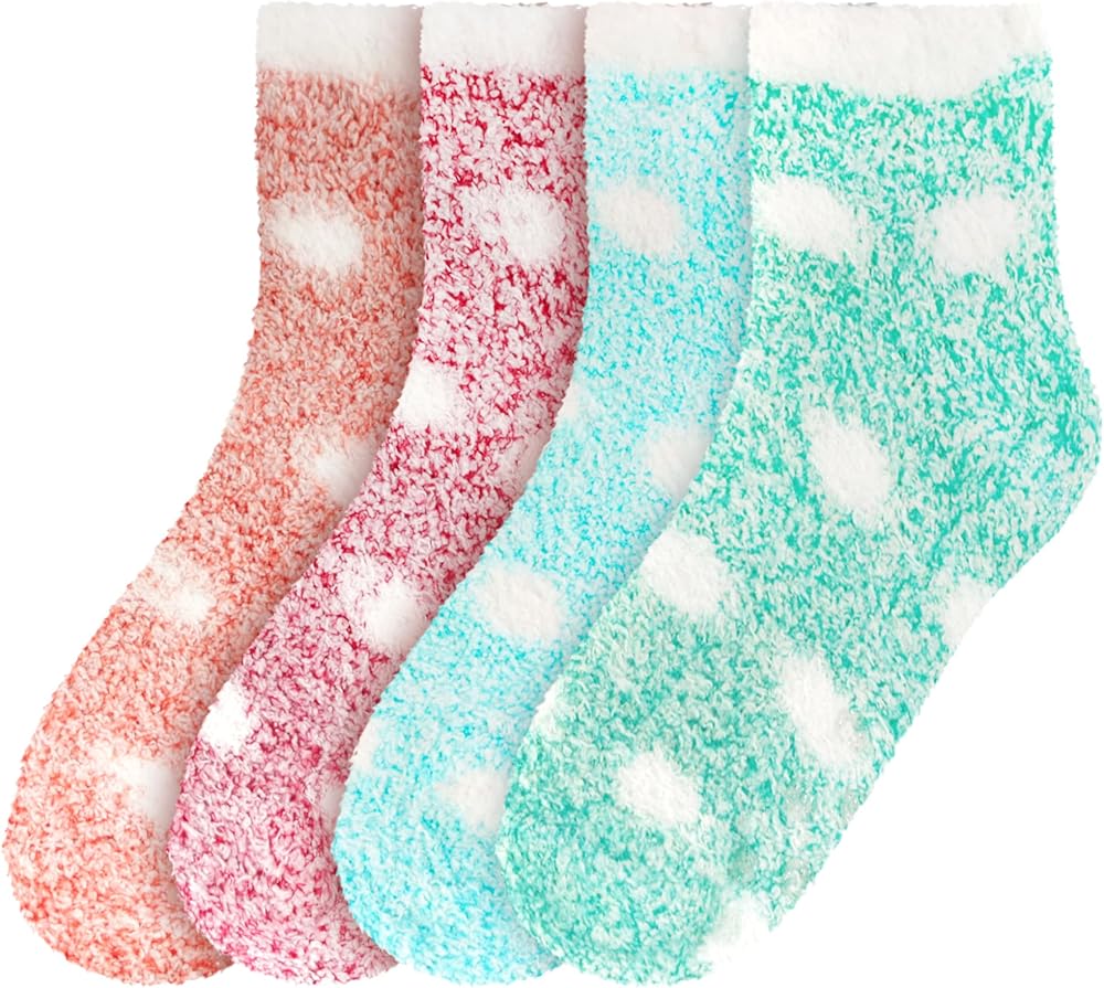 - Fuzzy Cozy Home Socks - Assortment 4D - 4 Pair Pack - Fits Womens Shoe Sizes 10 - 13