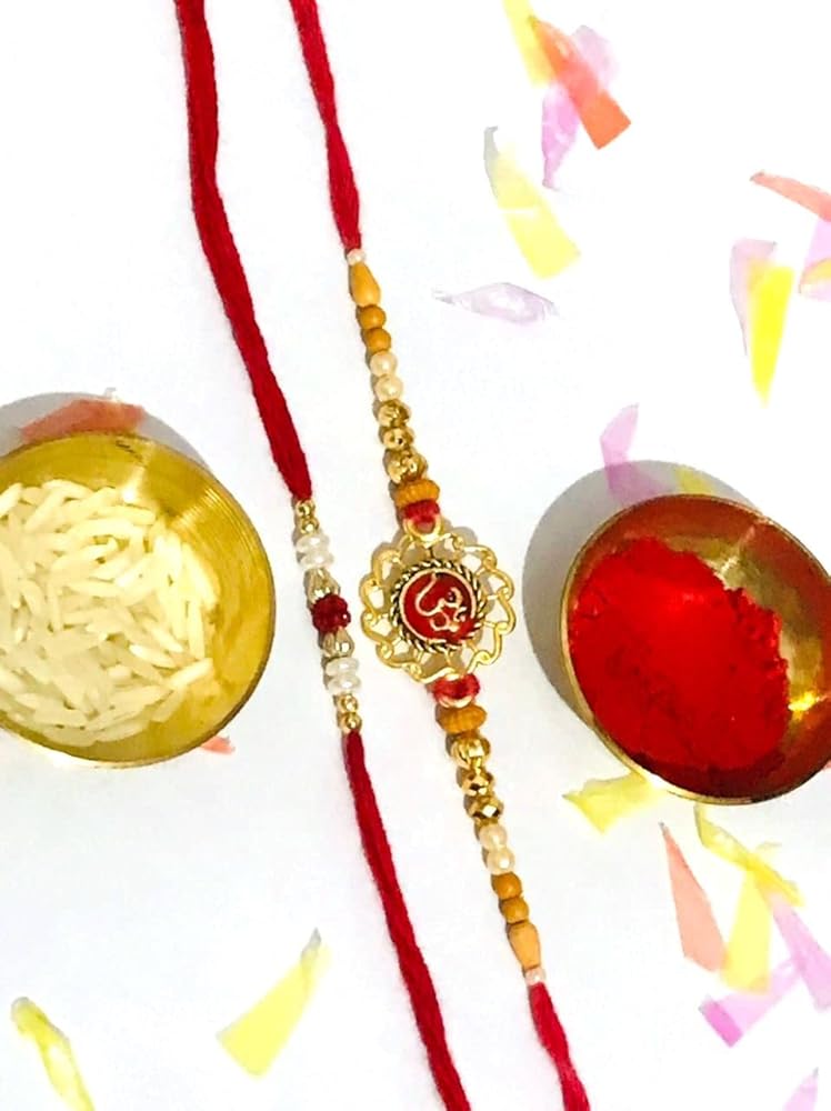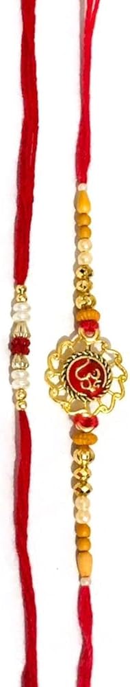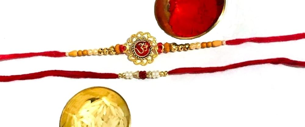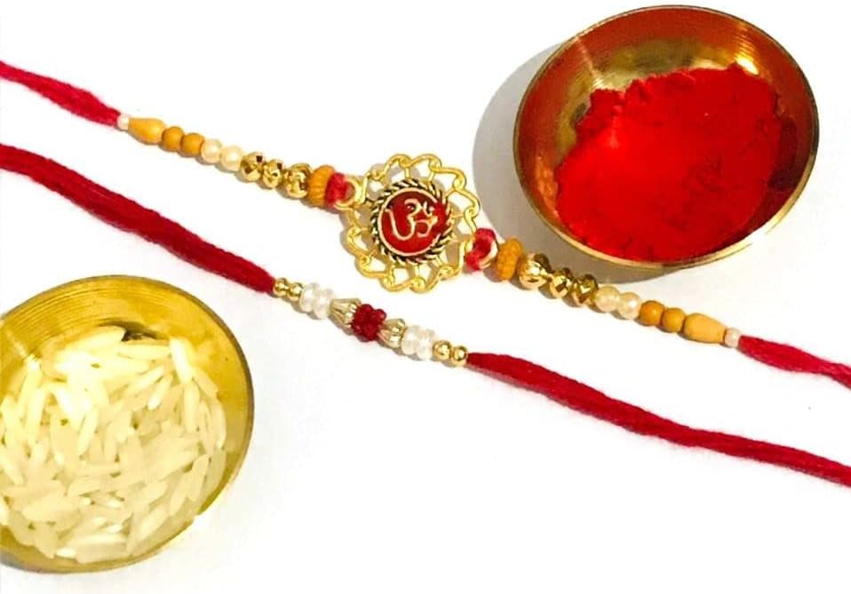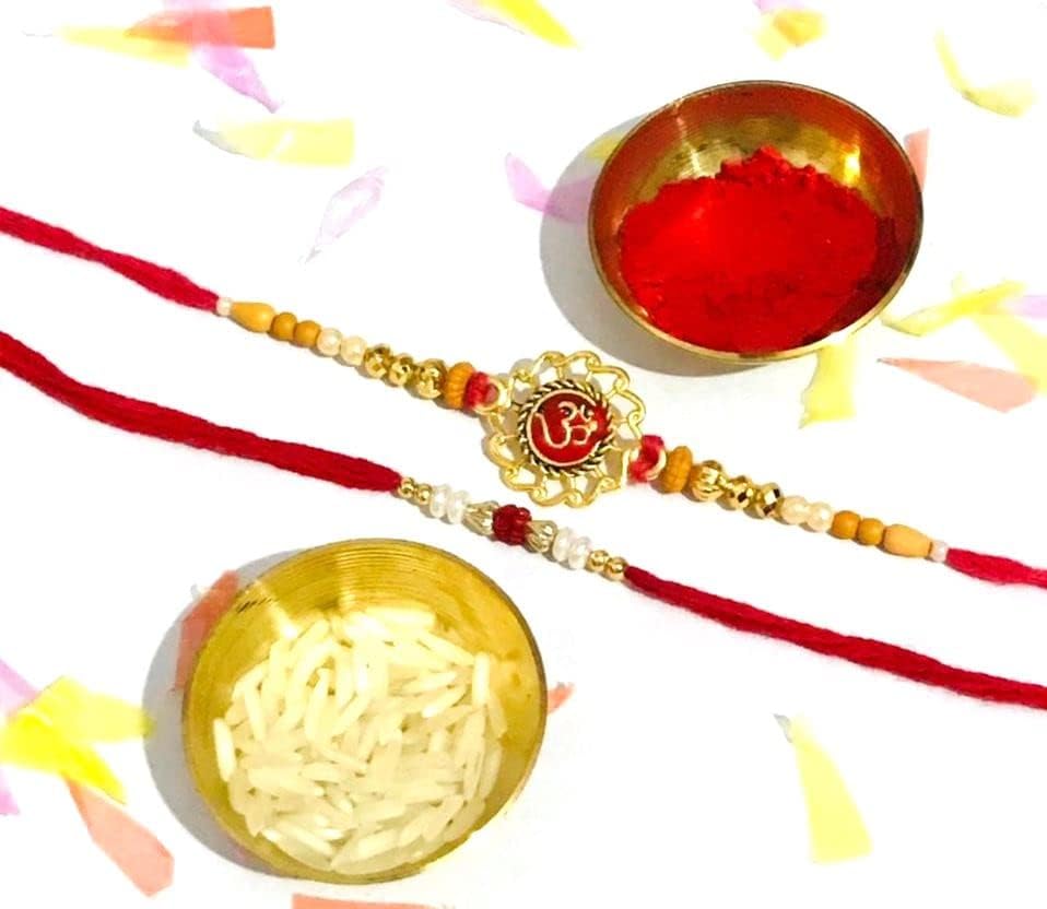 Indian Rakhi with Roli Chawal for Puja Bhaiya, Bhabhi Thread Raksha bandhan Rakhi Bracelet Gift, Wrist bands for loving /Brother Sister, Father & Friends - Set of 2