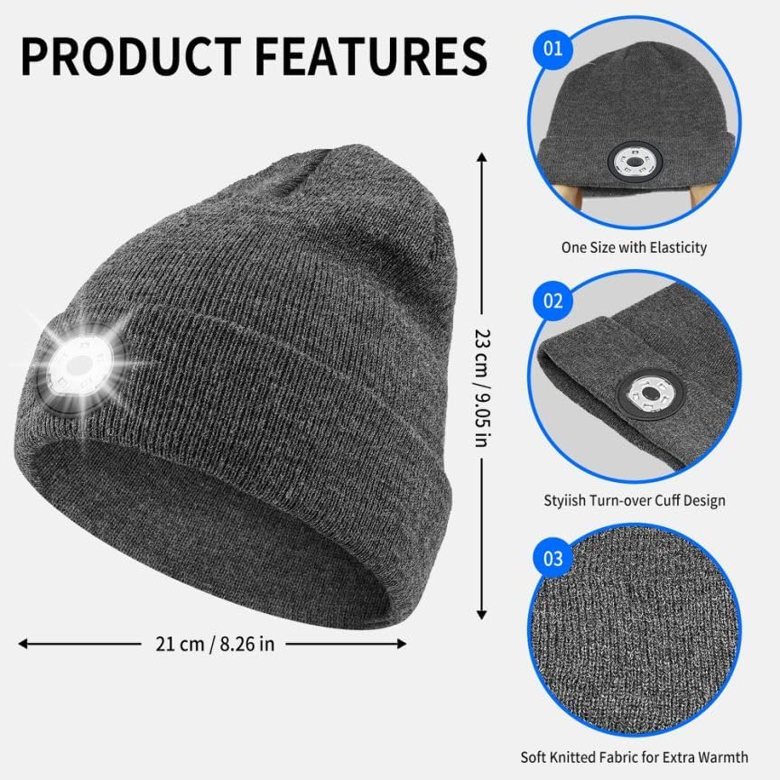 Our beanie hat with light is the perfect gift for any occasion, including Thanksgiving, Christmas, New Year's Day, Valentine's Day, Father's Day, birthdays, and more. And the knit led beanie hat is a great gift for men dad, husband, women, boyfriend, and handyman.