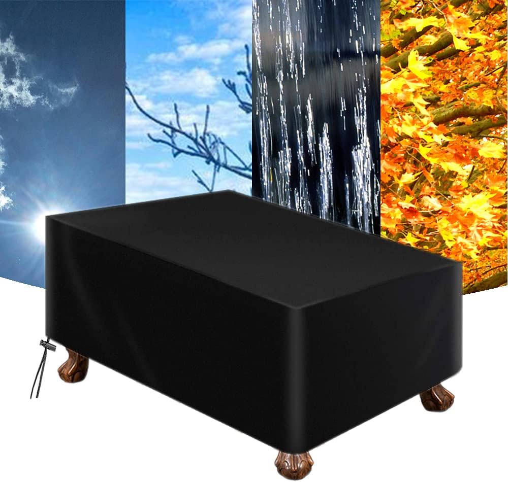 Billiard Pool Table Cover,Waterproof Cover for Pool Table Snooker Billiard Table 7/8/9 Foot Fitted ?Durable Material? Made of high-density 210D Oxford Cloth with silver-plated undercoating. provide excellent water/wind/snow/rip and UV resistance, keep your pool table clean.This cover has Long service life. ?8FT Pool Table Cover?Fit for 8 Foot Pool table or Billiard table.102L x 53W x 32H (260 x 135 x 82cm), please measure your table to purchase the size that fits best. ?All-Around Protection? The cover provide all-around protection,waterproof,uv protection,fits your outdoor and indoor pool table. ?Widely Use?Not only designed for pool tables but also great for patio furniture, such as outdoor table, chair set, sofa, fire pit table, gaming table, ping pong table, etc. ?CONVENIENT USE AND STORAGE? 1 x Pool Table Cover, 1 x Storage Bag for the cover