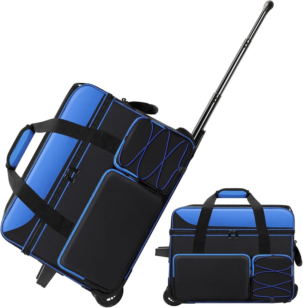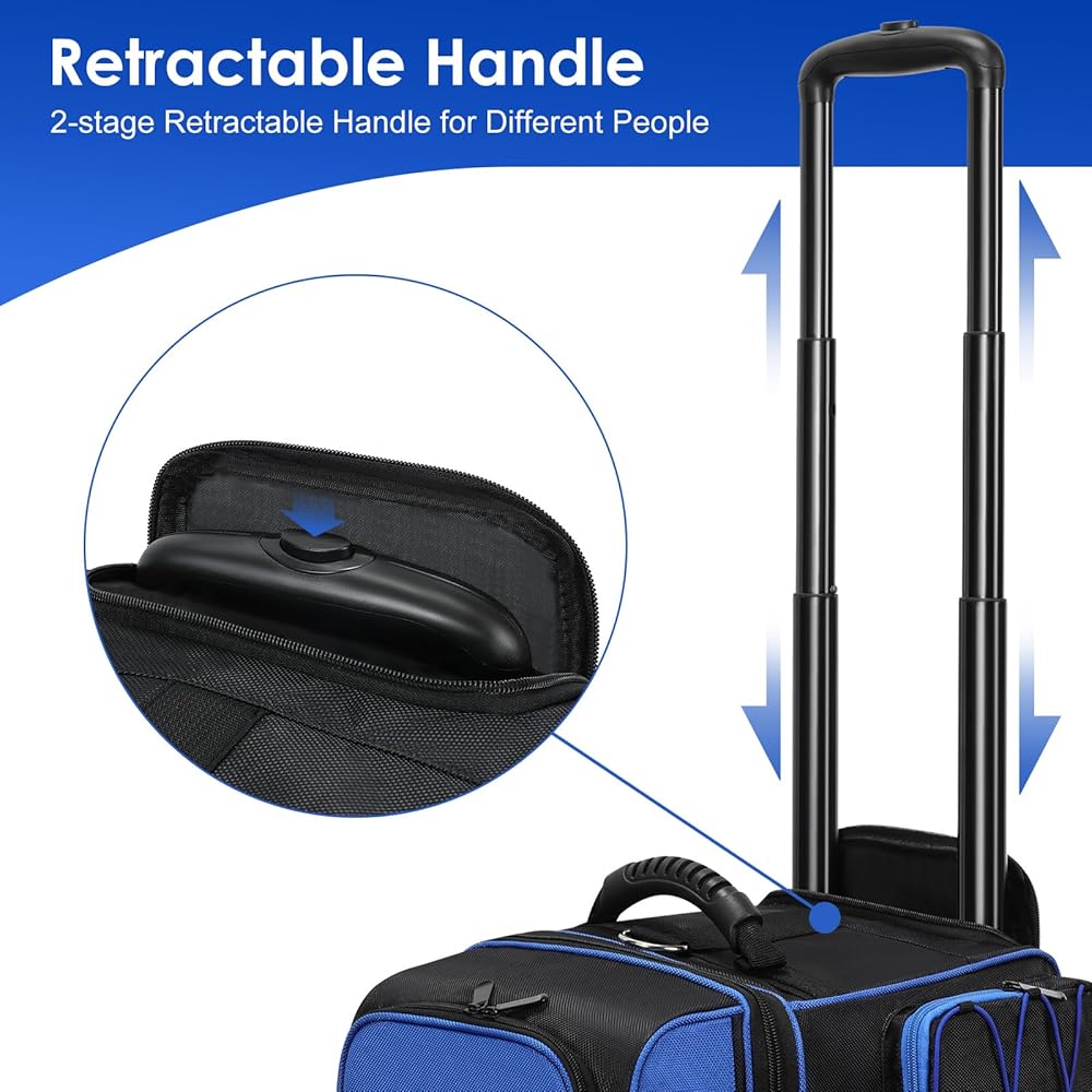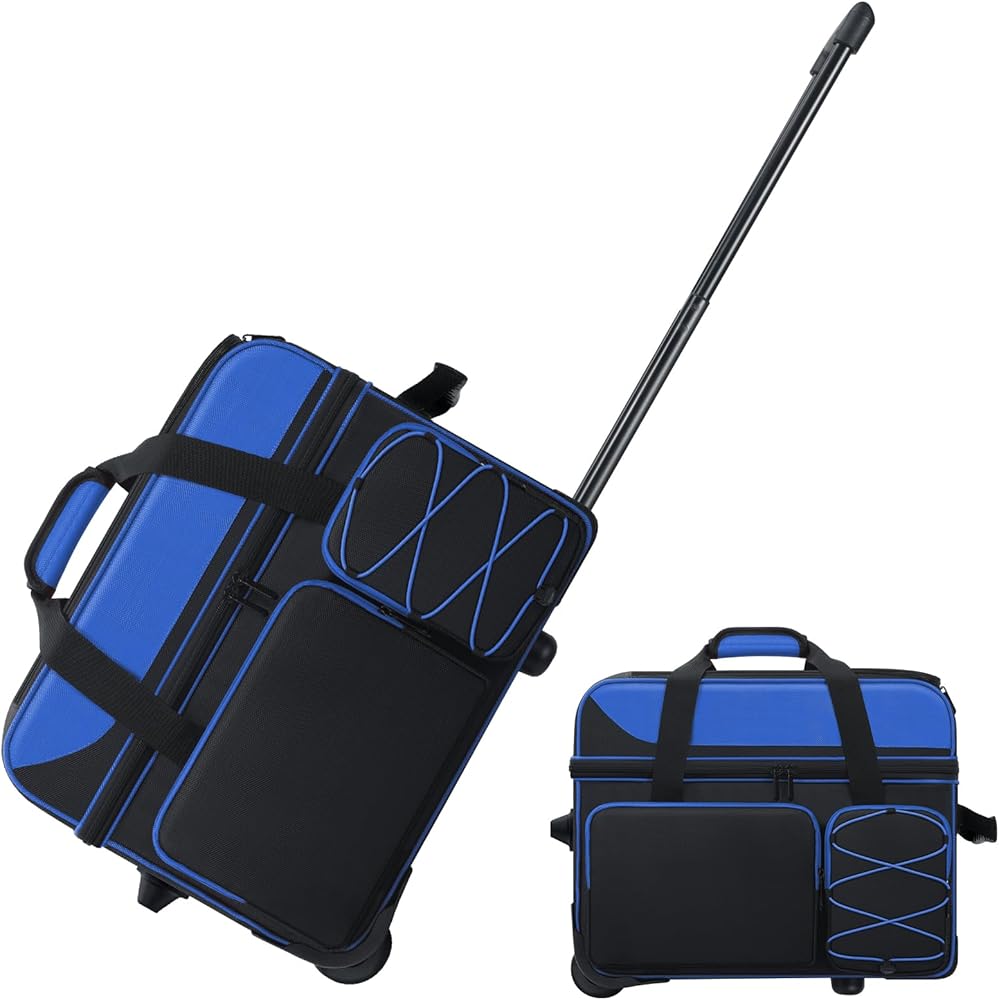 Double Roller Bowling Bag with Shoes Compartment, Large Capacity Bowling Ball Bag with Multi-Pockets for 2 Bowling Ball and Accessories, 2 Ball Bowling Bag with wheels & Retractable Handle