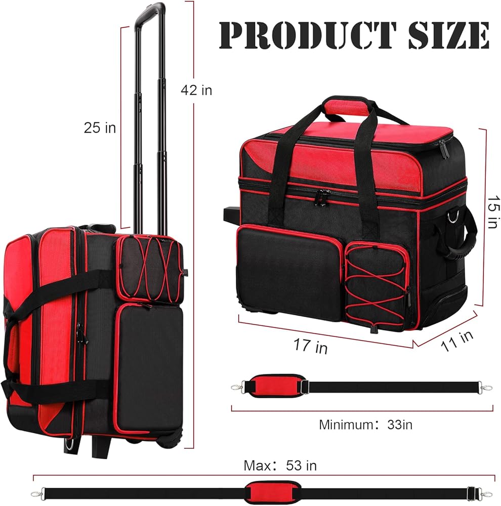 【Easy to Carry】The bowling bag with 2 ball rollers provides a comfortable carrying experience. Upgraded tie rod height is 42 inches. It also comes with a detachable and adjustable shoulder strap. A variety of carrying methods to meet your needs in various scenarios.