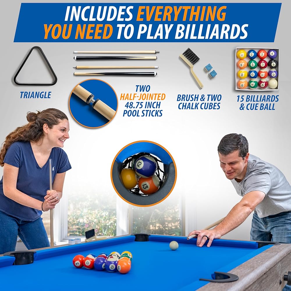 - All Accessories Included: Pool sticks, balls, triangle and 2 ping pong paddles and balls included