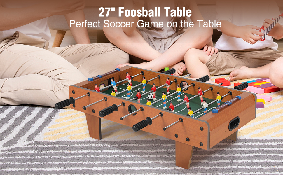 Compact & Easy to Assemble:The size of the mini foosball soccer set is 27.6 * 14.8 * 9.6 in, which is convenient to store without wasting space. The accessories are complete, and can be assembled in a short time according to the instructions.
