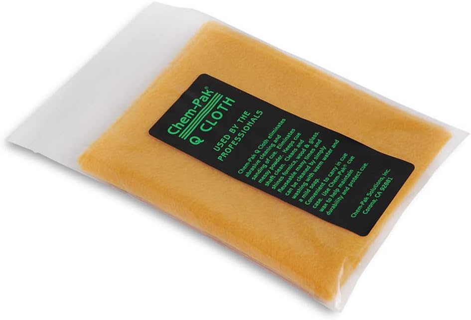 Product size: 12" x 9" (30,5 X 23 cm). Product weight: 0.5 oz (14 gr). *** Used by the professionals ***The Chem-Pak Q Cloth eliminates abrasive cleaning and sanding of cue. Eliminates messy powder. Keeps cue shaft clean. Use Chem-Pak cue wax to help maintain durability and protect cue. Made in the USA. Chempak Solutions has been satisfying their clients for over 60 years, with products well represented both domestically and internationally. The company's full line of products is manufactured using the highest quality materials available while operating state of the art manufacturing procedures, technology and packaging equipment.