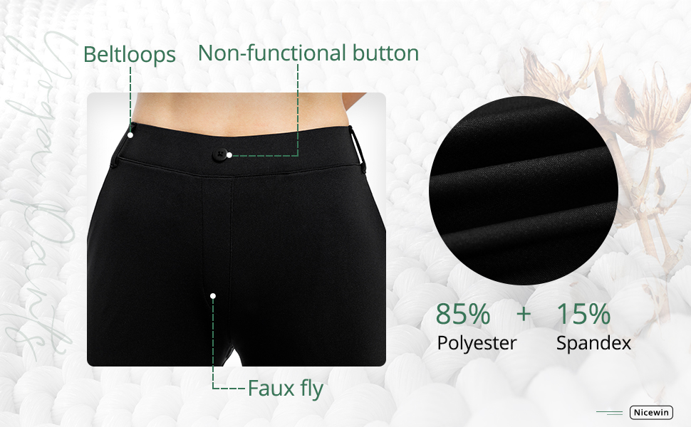 【NICEWIN High Stretchy Fabric】 85% polyester + 15% spandex, NICEWIN womens work pants fabric blend uses polyester to be durable and wrinkle-resistant. Adding spandex makes the fabric more elastic, provides an effortless 4-way stretch.