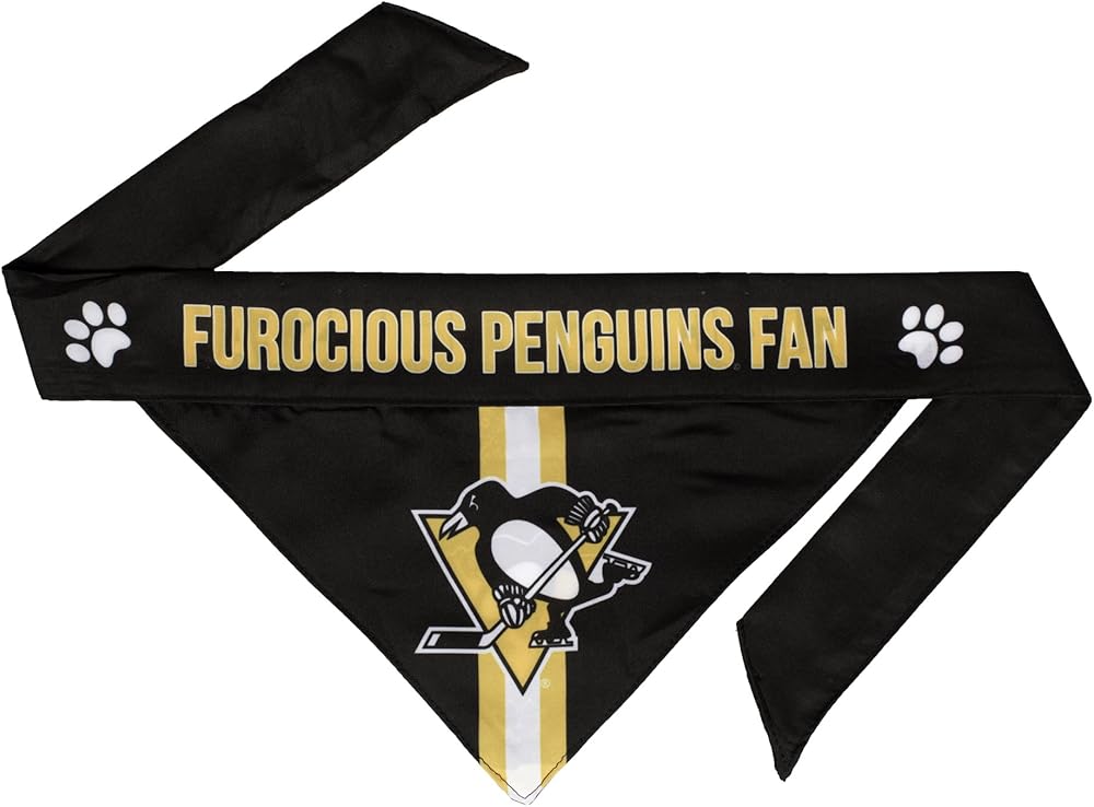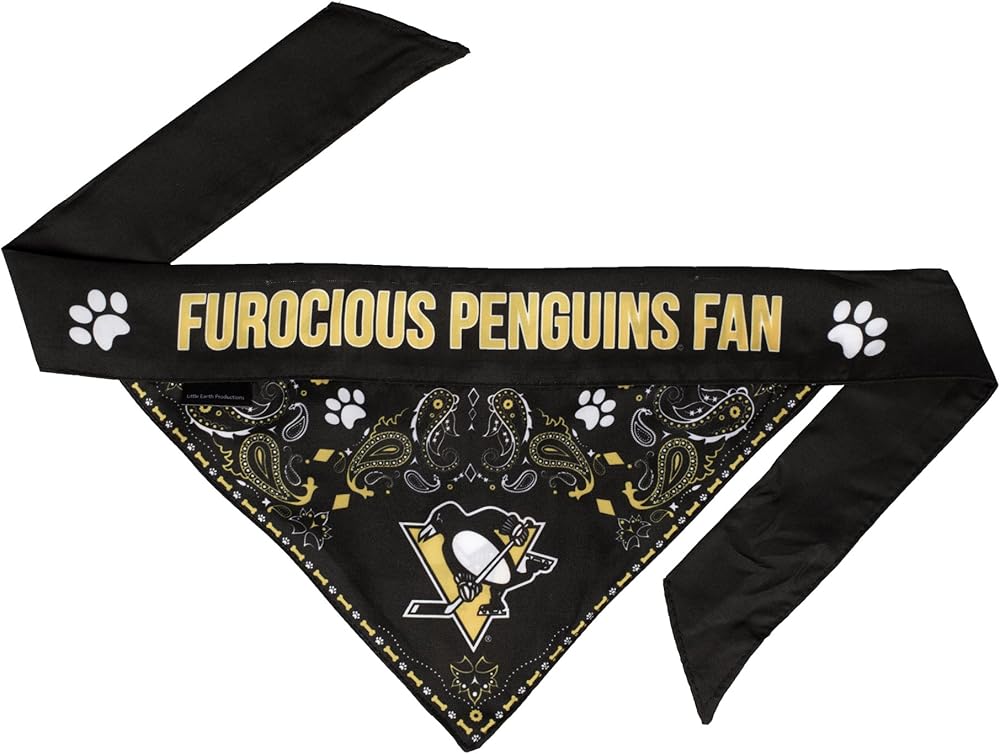 This 2 for 1 pet Bandana makes your dog or cat a stylish furry fan. Made of a soft cotton/poly blend, each bandana features 2 unique designs, a primary team logo design and a paisley design. Both designs feature a colorful team logo graphic that looks fabulous on walks, playing in the yard, or while napping on a lazy afternoon. Comes in 5 comfortable sizes and is machine washable for easy cleanups! Find your pet's size by using the sizing chart - measure your pet's neck size for the perfect fit.