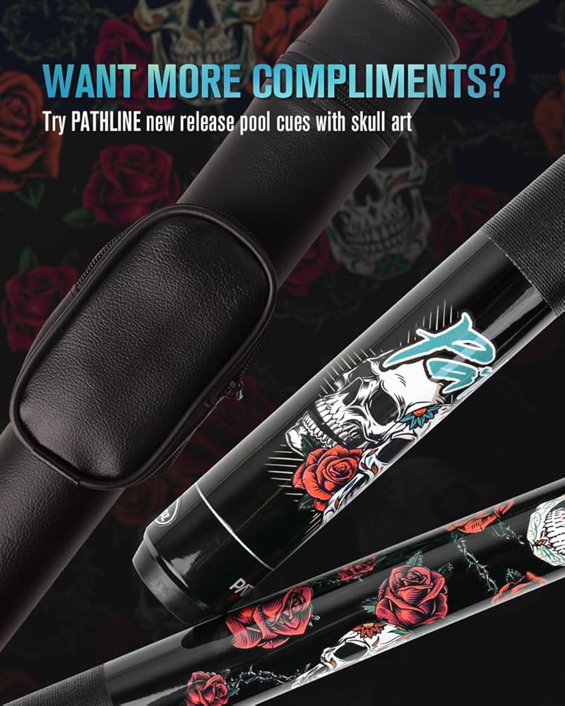 UNIQUE SKULL DESIGN - The cue is a colorful concept with sugar skulls and rose flowers on black background. You will get more compliments for the beautiful pool cue.
