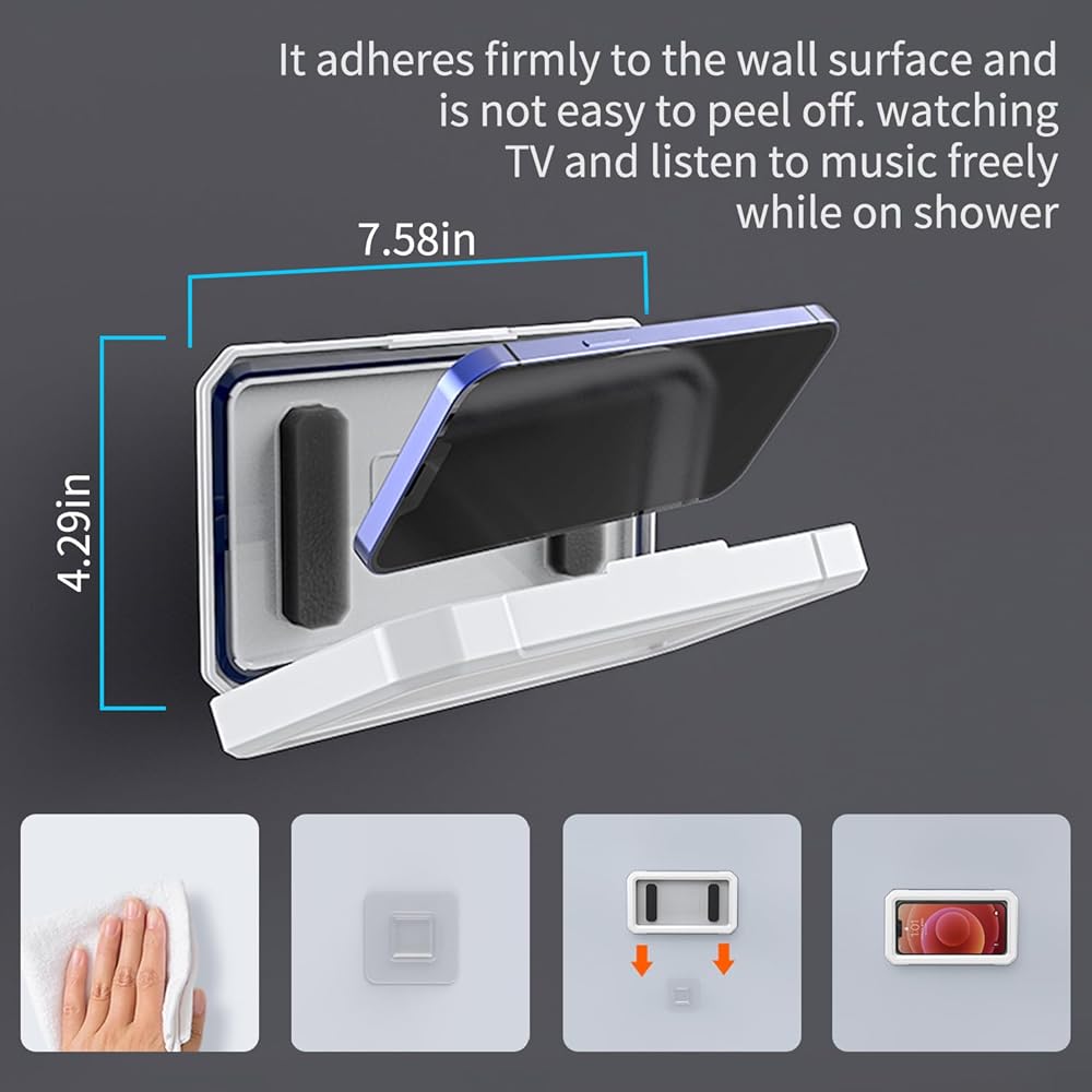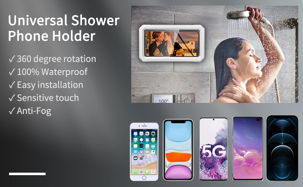 【Waterproof and Anti-fog】The Shower Phone Holder adopts dual layer waterproof structure and sealed shell design provide 360 degree full body rugged protection, anti-fog and original sound quality. Note that it is forbidden to completely immerse the product in water.
