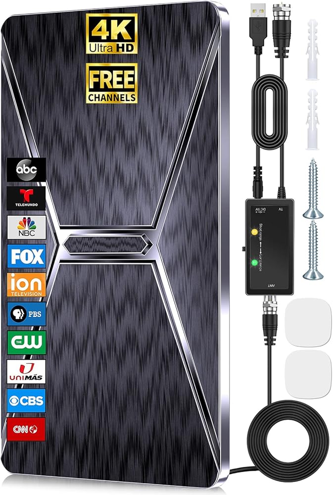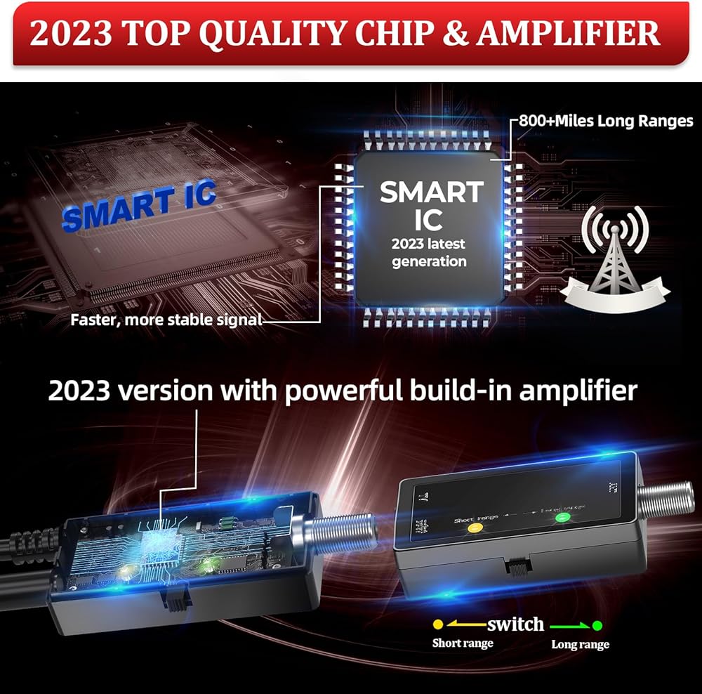 2023 TV Antenna for Smart TV Up 800 + Miles, Indoor Digital Antenna Outdoor Long rang for All TVs VHF UHF High Gain, Antenna Amplifier Signal Booster Support 8k 4k 1080p Fire Stick & HDTV Cable