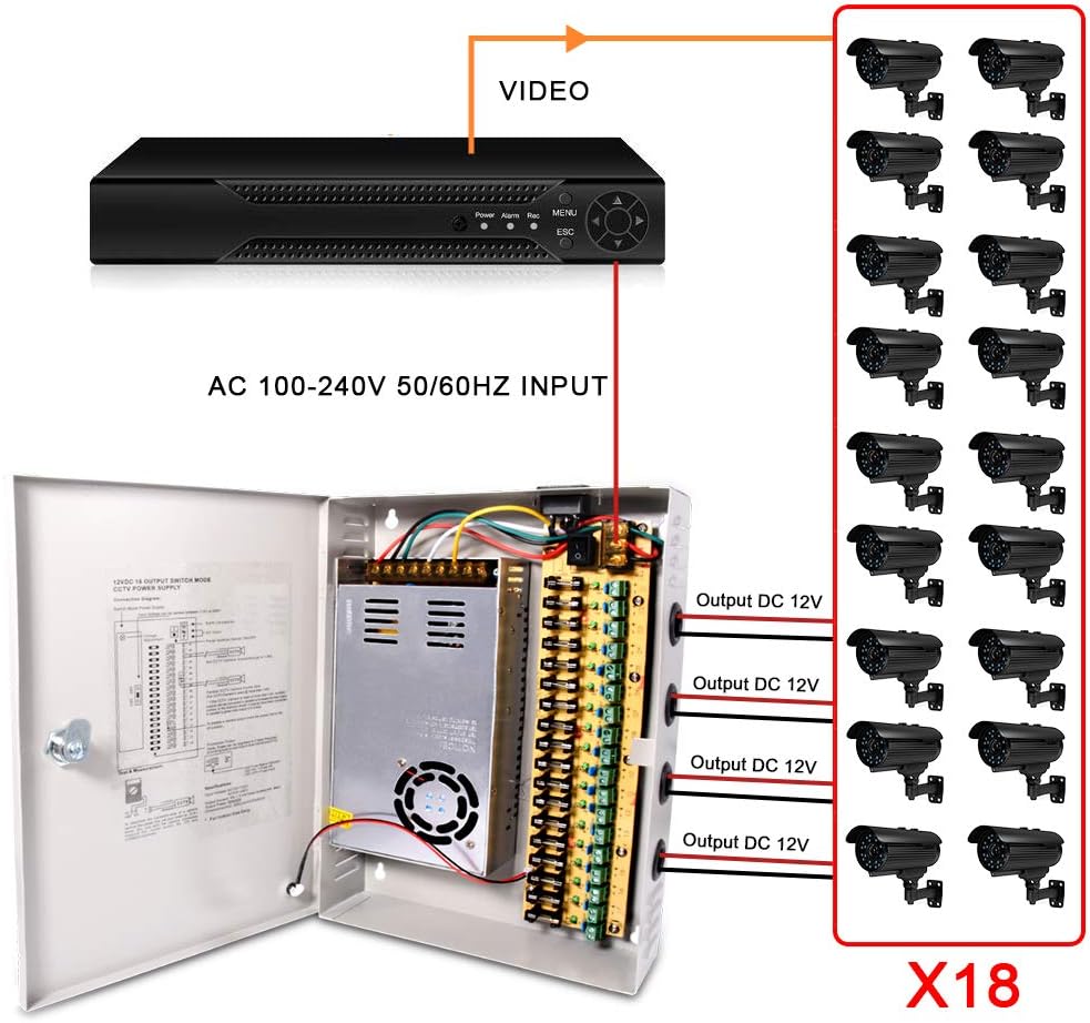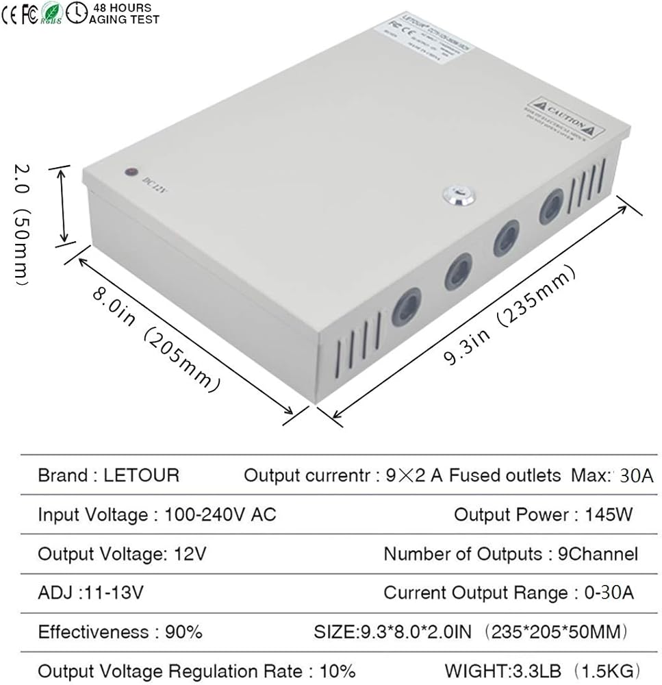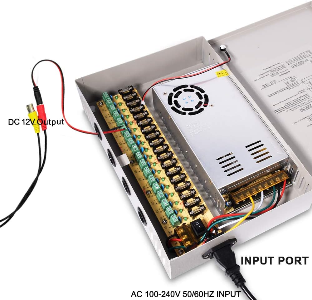 CCTV Power Supply 18CH Channel Port Box, LETOUR Distributed Power Supply Output 12V 30 Amp, for CCTV DVR Security System and Cameras