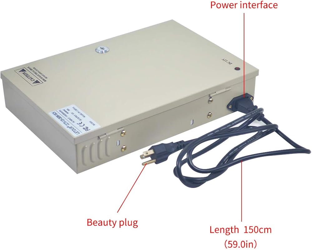 - Package Includes:One 9 CH 12V DC Power box, 6 ft AC Power Cord, Key Lock & Installation Accessories
