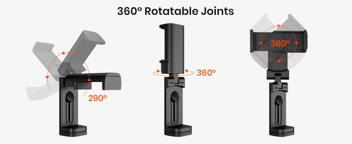 ✈️ 【Stable and Durable】 Made of ABS and metal, the strong clamp ensures your phone is clamped properly without dropping. (NOTICE: The base clamp fits any FLAT objects up to 1.57 inches in thickness.)