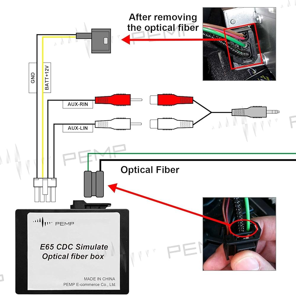 If your E65 e66 has no aux, you can use this fiber box to access other input devices;It works with the Android screen (ASIN: B0918G6TY4), and you will hear a very beautiful Android sound in the car.