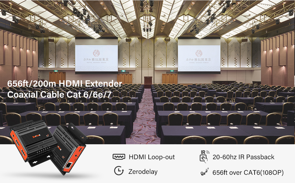 【656 FT HDMI Ethernet Extender】This cost effective HDMI extender help transmit clear and Syncronous HDMI audio and video signals over a single CAT6/6e/7 cable up to 656ft/200m.