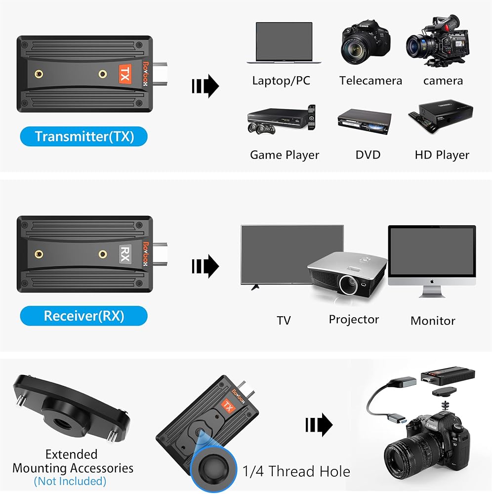【HDMI Extender Strong Compatibility】Small size, easier installation, plug and play can be used with most HDMI-equipped devices, including DVDs, DVRs, IPTV, CCTV Blu-ray players, set-top boxes, cable/satellite boxes and computer systems, game consoles, and more/connected HDTVs , projectors, monitors, etc. Our products are backed with a 1-year limited warranty. If you have any questions or concerns, click on our name in the buy box and select "Ask a Question"
