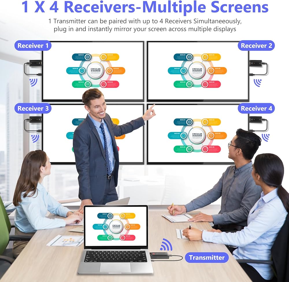 【Support 1-to-Many through LAN】Support unlimited receiving One to many configuration through network switches to segregate video traffic from the rest of the LAN.The transmission distance can reach 400M (TX to switch 200M, switch to RX200M) in the network Extenders transmission range with the help of a hub.