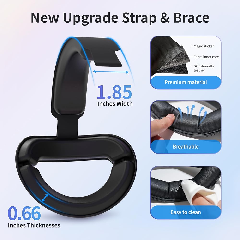 Comfort head strap: Comfortable cushion with inner soft memory foam with larger head support, making the head strap more comfortable and reducing facial pressure. The head strap for oculus quest 3 is quiet comfortable, even if you use it for a long time.