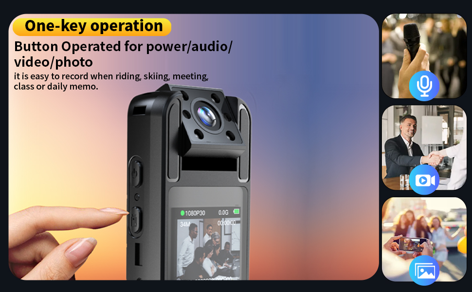 🎥【FHD 1080P/30fps Video and Ultra HD Photos】This body camera with clip is really a device not to be missed! Not only can it record video in full HD 1080P, but video recorder can also take ultra-high-definition photos. Whether it is in daily life or working at night, it can provide clear footage, and it can also recording R-ec! Moreover, if you need to record in a dark environment, this body camera is also equipped with 4 invisible infrared lights, which is really very practical.
