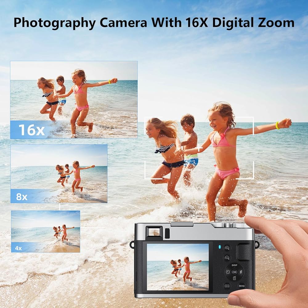 🎁【16X digital zoom & Bonus 32G SD Card】With the 16x digital zoom, you can get up close to your subjects or capture stunning wide-angle shots of breathtaking landscapes. It's like having a professional lens in your pocket.Start capturing memories right away with the included 32G SD card. You'll have plenty of storage space for all your photos and videos, allowing you to focus on what matters most - capturing precious moments.