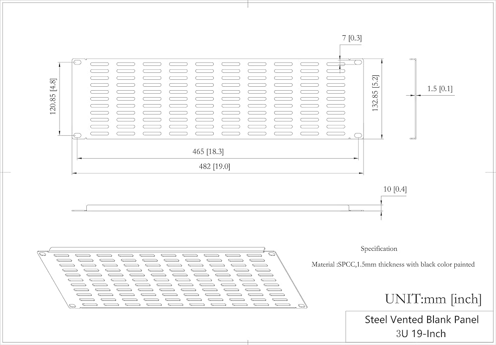 2 Pack of 3U Vented Blank Panel - Metal Rack Mount Filler Panel for 19in Server Rack Cabinet or Enclosure, Black (3U)