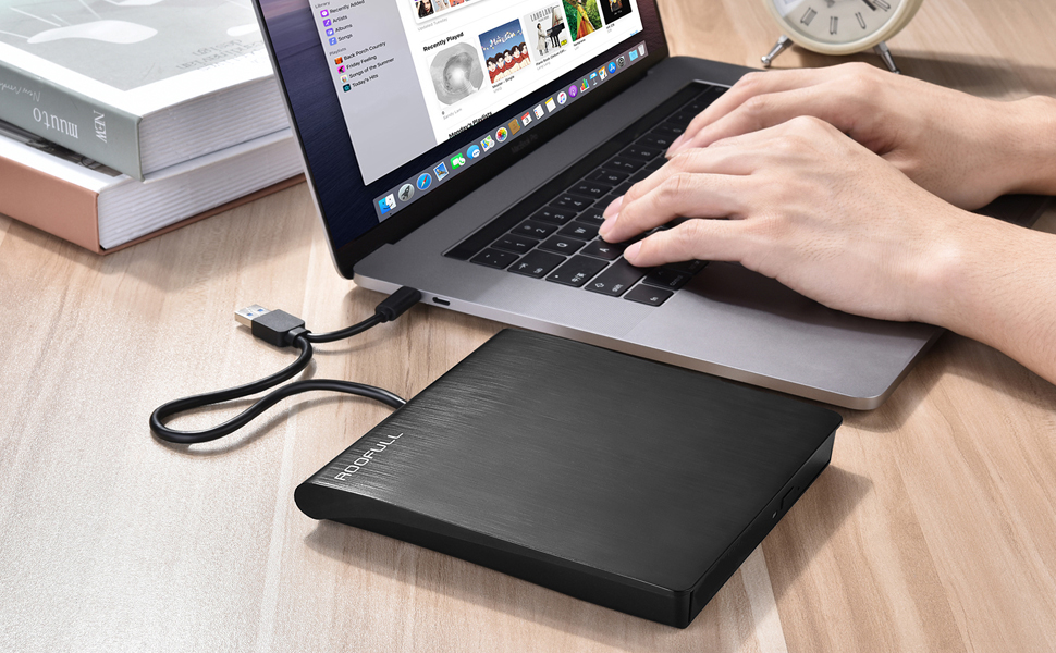【External CD/DVD Drive for Laptop Mac】Considering that most of the latest laptops and desktop computers have not been equipped with an internal CD/DVD drive for reading/writing CDs and DVDs. This ROOFULL premium USB 3.0 external CD/DVD drive is a good solution to reading and writing your CDs and DVDs, as easy as a built-in optical disk drive.