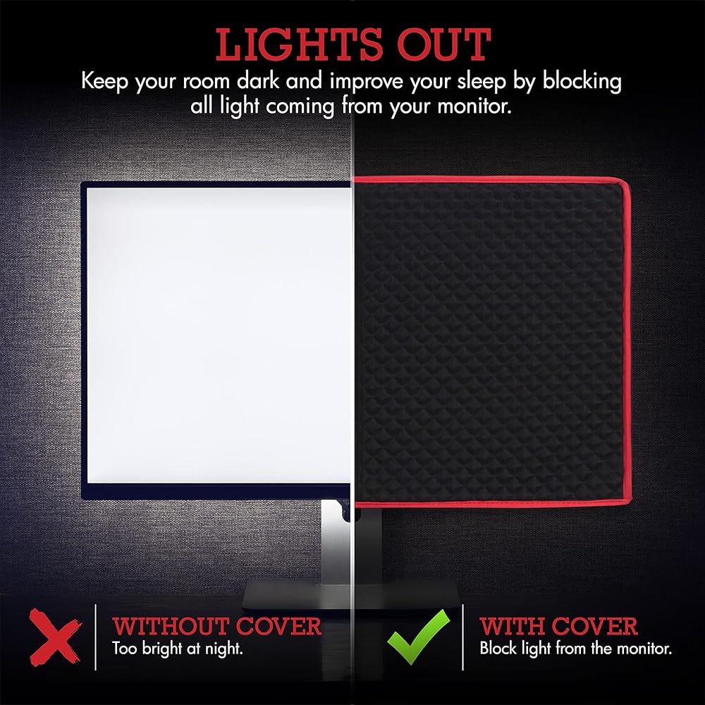 Premium Quality Gaming Monitor Dust Cover for gamers that are serious about protecting their high performance monitor. A high quality gaming monitor can be expensive. Some people would question why spend so much on just a monitor? But not us. We get you. With its high fps, vibrant colours and sharp image, your gaming monitor elevates your gaming experience and gives you the edge you need to keep at the top of your game. A high quality gaming monitor deserves premium protection. That's why we designed the ultimate dust cover to keep your monitor clean, protected and looking like brand new for years to come. With its stealth black diamond neoprene skin and sharp bright red trim, going AFK has never looked so good. This Gaming Monitor Dust Cover is dustproof, water resistant and cat resistant. Your cat owns your pc monitor, you and everything else in the house. Well at least that's what your cat thinks… Use our computer monitor cover to keep your screen safe from your cat overlord. Monitor covers for desktops are often boring and unimaginative. A monitor cover that actually looks good, there's an idea! More than just a plain black computer cover, this pc dust cover offers style without compromise. Our carefully designed monitor cover décor matches the style of your gaming PC and gear. Our cover's inside lining is made of a soft velvet material so you'll never worry about scratching your PC screen. Dust Cover fits all major gaming monitor brands Asus, Acer, Dell, Razer, Alienware, Samsung, AOC, BenQ, Gigabyte, LG, MSI, Viotek, ViewSonic and Sceptre monitors. Need to leave your monitor on at night? No problem. Our computer monitor dust cover is thick and will block out all light from your computer screen. Gaming Computer monitor cover for monitor sizes 20” 21.5” 22” 23” 23.5” 23.6” 23.8” 24” 24.5” 25” 27” 28” 29” 30” 31.5” 32” 34” PLEASE MEASURE MONITOR DIAGONALLY