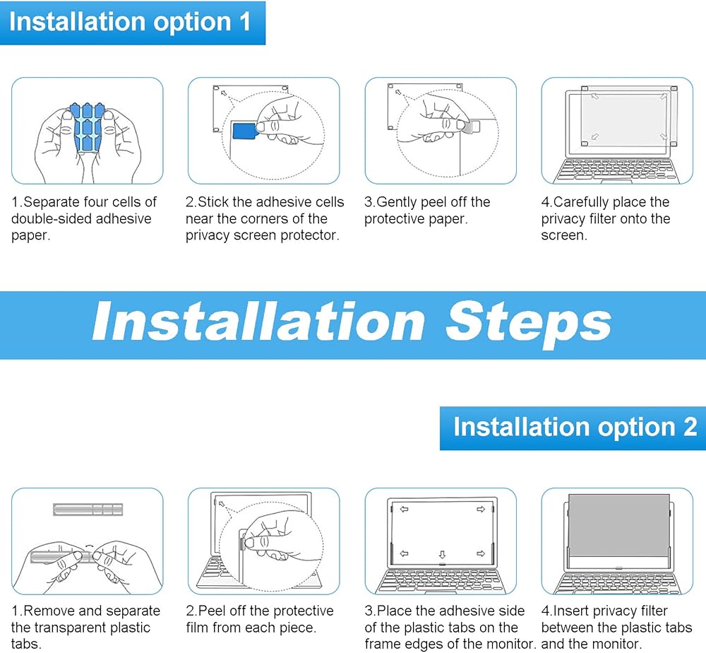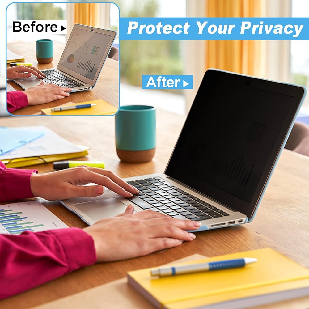 【Protect Privacy】This 14 inch laptop screen privacy filter is suitable for a variety of public places, business meetings, open offices, financial institutions, coffee shops, airplanes, trains, etc. The privacy screen limits the viewing angle to +/-30° and may appear black when approaching 60°. When you look from the front, the image is clear. Therefore, you don't have to worry about someone peeking at your screen.