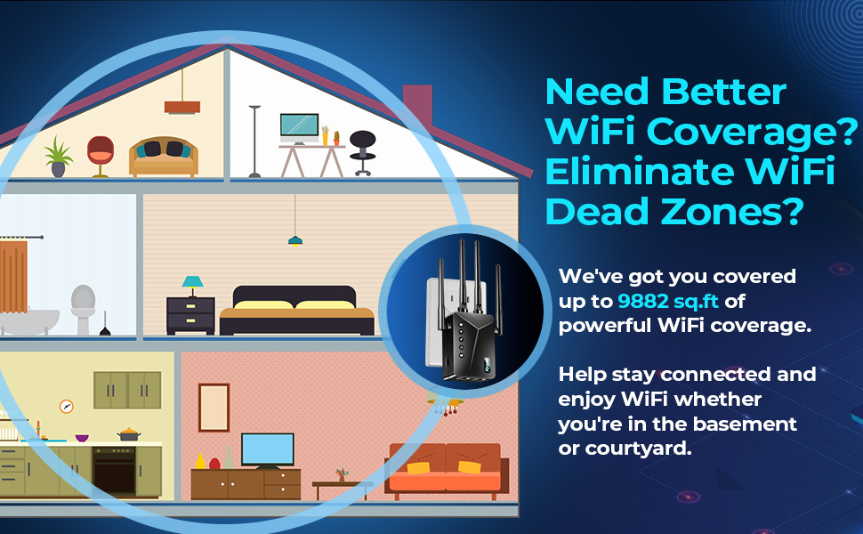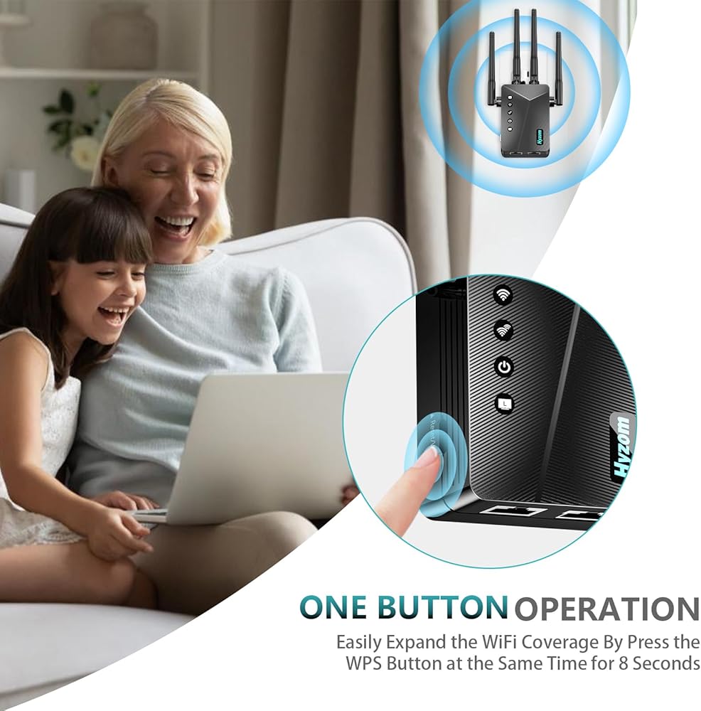 WiFi Extender Internet Booster and Signal Amplifier up to 9882 sq.ft - Long Range Coverage Wi-Fi Repeater for Home - with Ethernet Port & AP Mode, Support 40 Devices,1 Touch Setup