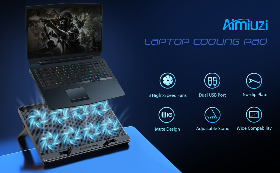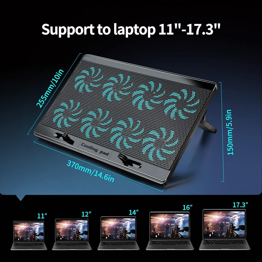 【Efficient Heat Dissipation】 The Laptop Cooling Pad is with 8 quite fans and metal mesh provides airflow to keep your laptop cool quickly and avoids overheating during long time using.
