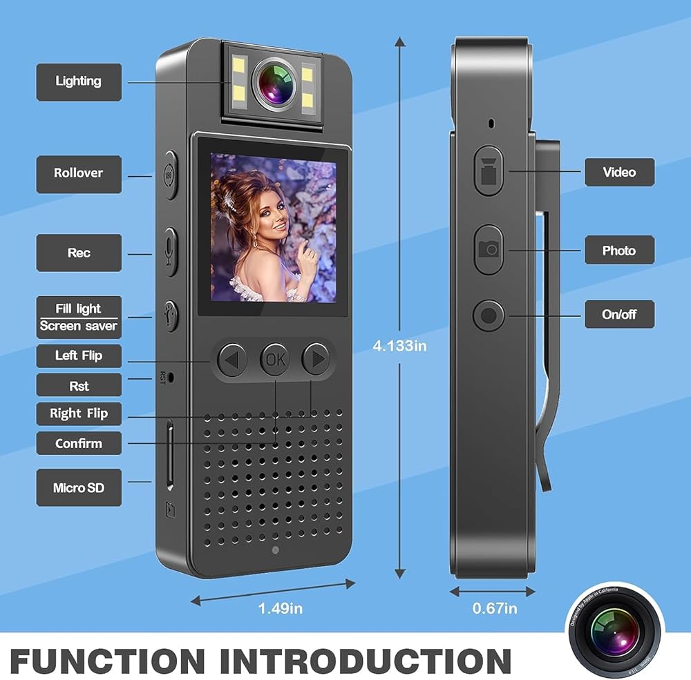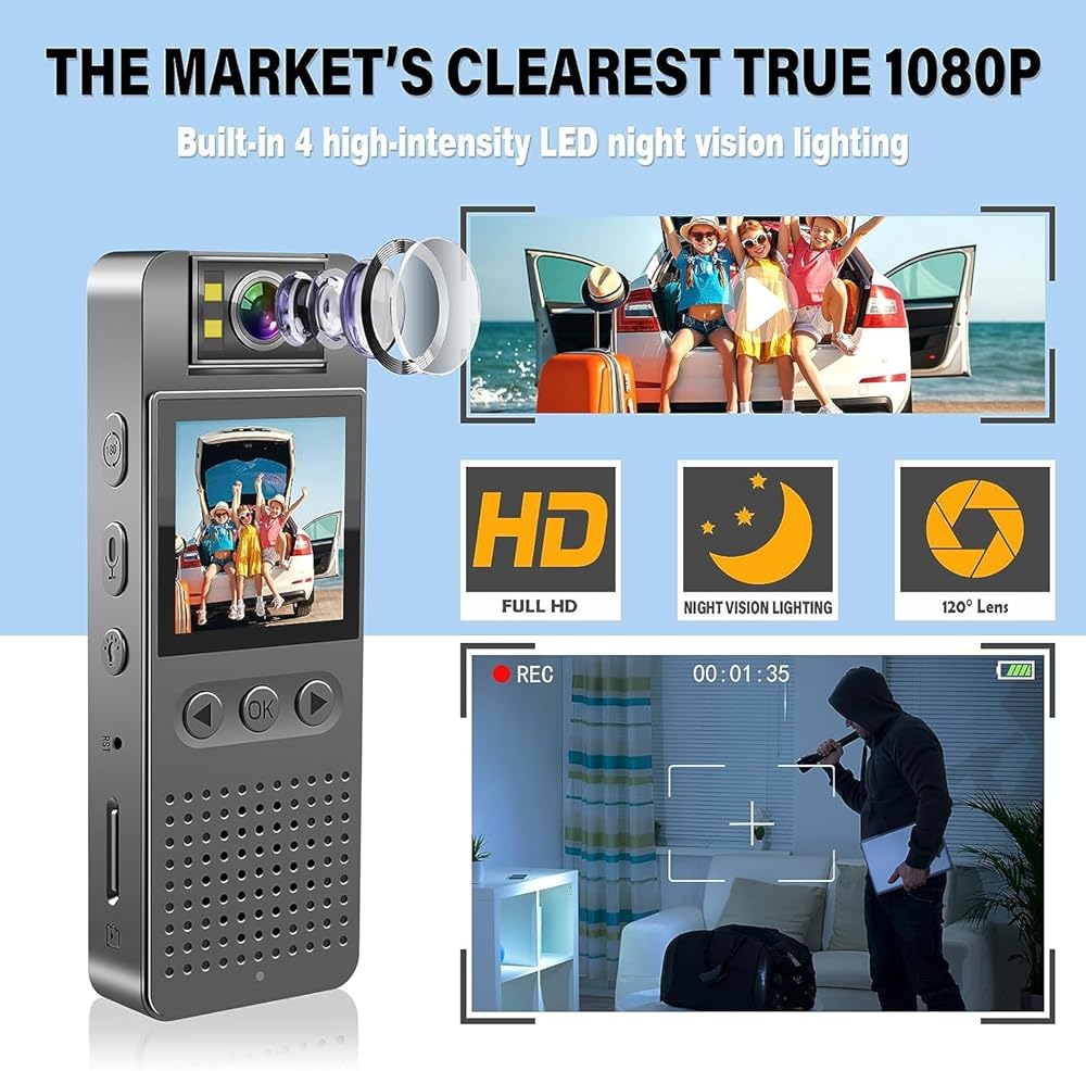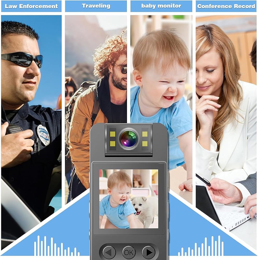 Body Camera with 1080P HD Recording,1.4 in Screen Recorder,Night Vision Fill-in lighting 7HR Battery Life Body Cam for outdoor,Home,sports,Pet Records,Security,Work Records, Travel Record (128GB)