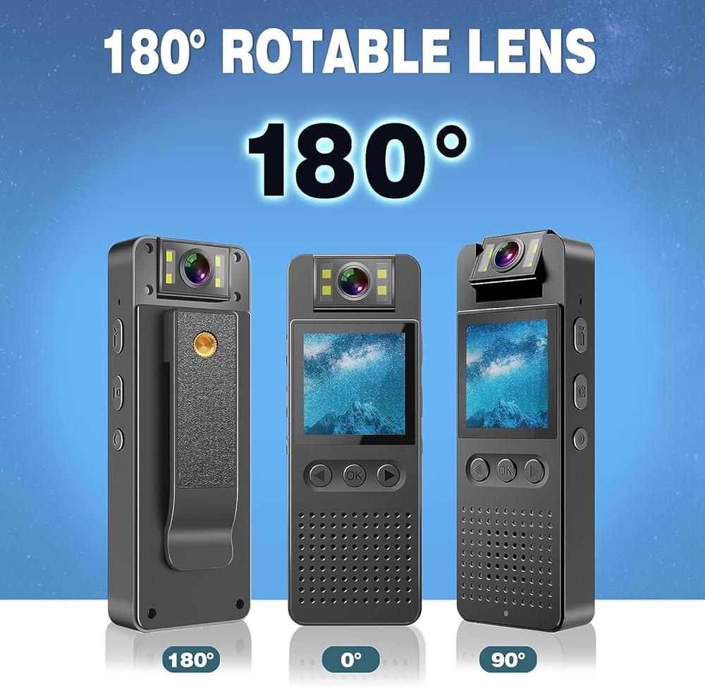 ✅【180° Rotatable -120°wide-angle lens 】Body Cam adjust the lens direction to your demand, ensuring the cam will not record at a wrong angle. rotation to capture valuable moments of your daily life and amazing travels, the video camera has different ways to wear. It can either be clipped on your backpack or put in your pocket. Suitable for a variety of scenarios: pet filming, outdoor sports, meetings, lectures, hiking, take-out delivery Evidence collection Daily proof, and police body camera